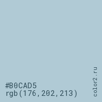 Цвет #B0CAD5 в цветовой модели RGB обозначается тремя октетами (176, 202, 213) в десятичном формате и #B0CAD5 в шестнадцатиричном (hex) формате, которые являются интенсивностью красного 176 (hex B0), интенсивность зелёного 202 (hex CA) и интенсивность синего 213 (hex D5).