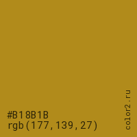 Цвет #B18B1B в цветовой модели RGB обозначается тремя октетами (177, 139, 27) в десятичном формате и #B18B1B в шестнадцатиричном (hex) формате, которые являются интенсивностью красного 177 (hex B1), интенсивность зелёного 139 (hex 8B) и интенсивность синего 27 (hex 1B).