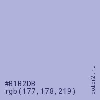Цвет #B1B2DB в цветовой модели RGB обозначается тремя октетами (177, 178, 219) в десятичном формате и #B1B2DB в шестнадцатиричном (hex) формате, которые являются интенсивностью красного 177 (hex B1), интенсивность зелёного 178 (hex B2) и интенсивность синего 219 (hex DB).