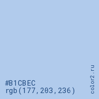 Цвет #B1CBEC в цветовой модели RGB обозначается тремя октетами (177, 203, 236) в десятичном формате и #B1CBEC в шестнадцатиричном (hex) формате, которые являются интенсивностью красного 177 (hex B1), интенсивность зелёного 203 (hex CB) и интенсивность синего 236 (hex EC).