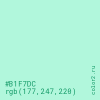 Цвет #B1F7DC в цветовой модели RGB обозначается тремя октетами (177, 247, 220) в десятичном формате и #B1F7DC в шестнадцатиричном (hex) формате, которые являются интенсивностью красного 177 (hex B1), интенсивность зелёного 247 (hex F7) и интенсивность синего 220 (hex DC).