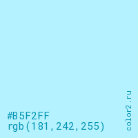 Цвет #B5F2FF в цветовой модели RGB обозначается тремя октетами (181, 242, 255) в десятичном формате и #B5F2FF в шестнадцатиричном (hex) формате, которые являются интенсивностью красного 181 (hex B5), интенсивность зелёного 242 (hex F2) и интенсивность синего 255 (hex FF).
