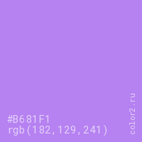Цвет #B681F1 в цветовой модели RGB обозначается тремя октетами (182, 129, 241) в десятичном формате и #B681F1 в шестнадцатиричном (hex) формате, которые являются интенсивностью красного 182 (hex B6), интенсивность зелёного 129 (hex 81) и интенсивность синего 241 (hex F1).