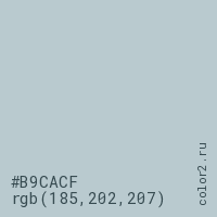 Цвет #B9CACF в цветовой модели RGB обозначается тремя октетами (185, 202, 207) в десятичном формате и #B9CACF в шестнадцатиричном (hex) формате, которые являются интенсивностью красного 185 (hex B9), интенсивность зелёного 202 (hex CA) и интенсивность синего 207 (hex CF).