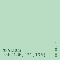 Цвет #B9DDC3 в цветовой модели RGB обозначается тремя октетами (185, 221, 195) в десятичном формате и #B9DDC3 в шестнадцатиричном (hex) формате, которые являются интенсивностью красного 185 (hex B9), интенсивность зелёного 221 (hex DD) и интенсивность синего 195 (hex C3).