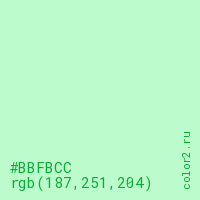 Цвет #BBFBCC в цветовой модели RGB обозначается тремя октетами (187, 251, 204) в десятичном формате и #BBFBCC в шестнадцатиричном (hex) формате, которые являются интенсивностью красного 187 (hex BB), интенсивность зелёного 251 (hex FB) и интенсивность синего 204 (hex CC).