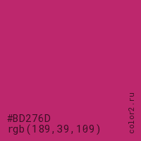 | RGB | rgb(189, 39, 109) |