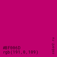 Цвет #BF006D в цветовой модели RGB обозначается тремя октетами (191, 0, 109) в десятичном формате и #BF006D в шестнадцатиричном (hex) формате, которые являются интенсивностью красного 191 (hex BF), интенсивность зелёного 0 (hex 00) и интенсивность синего 109 (hex 6D).