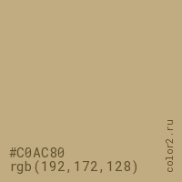 Цвет #C0AC80 в цветовой модели RGB обозначается тремя октетами (192, 172, 128) в десятичном формате и #C0AC80 в шестнадцатиричном (hex) формате, которые являются интенсивностью красного 192 (hex C0), интенсивность зелёного 172 (hex AC) и интенсивность синего 128 (hex 80).
