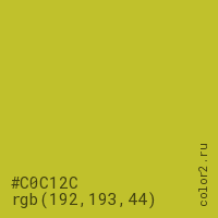 Цвет #C0C12C в цветовой модели RGB обозначается тремя октетами (192, 193, 44) в десятичном формате и #C0C12C в шестнадцатиричном (hex) формате, которые являются интенсивностью красного 192 (hex C0), интенсивность зелёного 193 (hex C1) и интенсивность синего 44 (hex 2C).