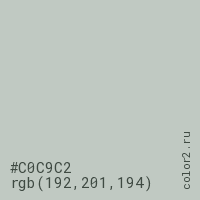 Цвет #C0C9C2 в цветовой модели RGB обозначается тремя октетами (192, 201, 194) в десятичном формате и #C0C9C2 в шестнадцатиричном (hex) формате, которые являются интенсивностью красного 192 (hex C0), интенсивность зелёного 201 (hex C9) и интенсивность синего 194 (hex C2).