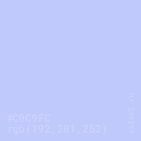 Цвет #C0C9FC в цветовой модели RGB обозначается тремя октетами (192, 201, 252) в десятичном формате и #C0C9FC в шестнадцатиричном (hex) формате, которые являются интенсивностью красного 192 (hex C0), интенсивность зелёного 201 (hex C9) и интенсивность синего 252 (hex FC).