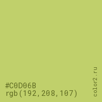 Цвет #C0D06B в цветовой модели RGB обозначается тремя октетами (192, 208, 107) в десятичном формате и #C0D06B в шестнадцатиричном (hex) формате, которые являются интенсивностью красного 192 (hex C0), интенсивность зелёного 208 (hex D0) и интенсивность синего 107 (hex 6B).