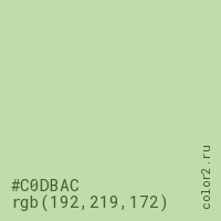 Цвет #C0DBAC в цветовой модели RGB обозначается тремя октетами (192, 219, 172) в десятичном формате и #C0DBAC в шестнадцатиричном (hex) формате, которые являются интенсивностью красного 192 (hex C0), интенсивность зелёного 219 (hex DB) и интенсивность синего 172 (hex AC).