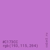 Цвет #C173CC в цветовой модели RGB обозначается тремя октетами (193, 115, 204) в десятичном формате и #C173CC в шестнадцатиричном (hex) формате, которые являются интенсивностью красного 193 (hex C1), интенсивность зелёного 115 (hex 73) и интенсивность синего 204 (hex CC).