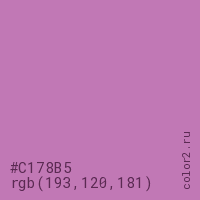 Цвет #C178B5 в цветовой модели RGB обозначается тремя октетами (193, 120, 181) в десятичном формате и #C178B5 в шестнадцатиричном (hex) формате, которые являются интенсивностью красного 193 (hex C1), интенсивность зелёного 120 (hex 78) и интенсивность синего 181 (hex B5).