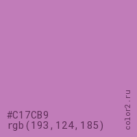 Цвет #C17CB9 в цветовой модели RGB обозначается тремя октетами (193, 124, 185) в десятичном формате и #C17CB9 в шестнадцатиричном (hex) формате, которые являются интенсивностью красного 193 (hex C1), интенсивность зелёного 124 (hex 7C) и интенсивность синего 185 (hex B9).