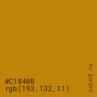 Цвет #C1840B в цветовой модели RGB обозначается тремя октетами (193, 132, 11) в десятичном формате и #C1840B в шестнадцатиричном (hex) формате, которые являются интенсивностью красного 193 (hex C1), интенсивность зелёного 132 (hex 84) и интенсивность синего 11 (hex 0B).