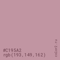 Цвет #C195A2 в цветовой модели RGB обозначается тремя октетами (193, 149, 162) в десятичном формате и #C195A2 в шестнадцатиричном (hex) формате, которые являются интенсивностью красного 193 (hex C1), интенсивность зелёного 149 (hex 95) и интенсивность синего 162 (hex A2).