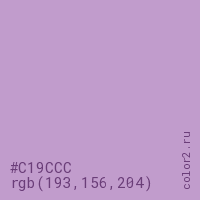 Цвет #C19CCC в цветовой модели RGB обозначается тремя октетами (193, 156, 204) в десятичном формате и #C19CCC в шестнадцатиричном (hex) формате, которые являются интенсивностью красного 193 (hex C1), интенсивность зелёного 156 (hex 9C) и интенсивность синего 204 (hex CC).