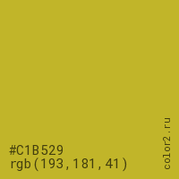 Цвет #C1B529 в цветовой модели RGB обозначается тремя октетами (193, 181, 41) в десятичном формате и #C1B529 в шестнадцатиричном (hex) формате, которые являются интенсивностью красного 193 (hex C1), интенсивность зелёного 181 (hex B5) и интенсивность синего 41 (hex 29).