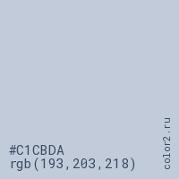 Цвет #C1CBDA в цветовой модели RGB обозначается тремя октетами (193, 203, 218) в десятичном формате и #C1CBDA в шестнадцатиричном (hex) формате, которые являются интенсивностью красного 193 (hex C1), интенсивность зелёного 203 (hex CB) и интенсивность синего 218 (hex DA).