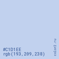 Цвет #C1D1EE в цветовой модели RGB обозначается тремя октетами (193, 209, 238) в десятичном формате и #C1D1EE в шестнадцатиричном (hex) формате, которые являются интенсивностью красного 193 (hex C1), интенсивность зелёного 209 (hex D1) и интенсивность синего 238 (hex EE).
