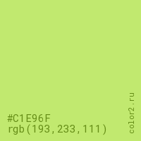 Цвет #C1E96F в цветовой модели RGB обозначается тремя октетами (193, 233, 111) в десятичном формате и #C1E96F в шестнадцатиричном (hex) формате, которые являются интенсивностью красного 193 (hex C1), интенсивность зелёного 233 (hex E9) и интенсивность синего 111 (hex 6F).