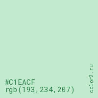 Цвет #C1EACF в цветовой модели RGB обозначается тремя октетами (193, 234, 207) в десятичном формате и #C1EACF в шестнадцатиричном (hex) формате, которые являются интенсивностью красного 193 (hex C1), интенсивность зелёного 234 (hex EA) и интенсивность синего 207 (hex CF).