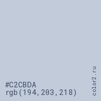 Цвет #C2CBDA в цветовой модели RGB обозначается тремя октетами (194, 203, 218) в десятичном формате и #C2CBDA в шестнадцатиричном (hex) формате, которые являются интенсивностью красного 194 (hex C2), интенсивность зелёного 203 (hex CB) и интенсивность синего 218 (hex DA).