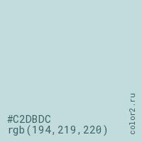 Цвет #C2DBDC в цветовой модели RGB обозначается тремя октетами (194, 219, 220) в десятичном формате и #C2DBDC в шестнадцатиричном (hex) формате, которые являются интенсивностью красного 194 (hex C2), интенсивность зелёного 219 (hex DB) и интенсивность синего 220 (hex DC).