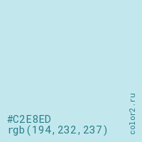 Цвет #C2E8ED в цветовой модели RGB обозначается тремя октетами (194, 232, 237) в десятичном формате и #C2E8ED в шестнадцатиричном (hex) формате, которые являются интенсивностью красного 194 (hex C2), интенсивность зелёного 232 (hex E8) и интенсивность синего 237 (hex ED).