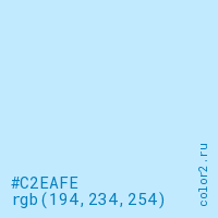 Цвет #C2EAFE в цветовой модели RGB обозначается тремя октетами (194, 234, 254) в десятичном формате и #C2EAFE в шестнадцатиричном (hex) формате, которые являются интенсивностью красного 194 (hex C2), интенсивность зелёного 234 (hex EA) и интенсивность синего 254 (hex FE).