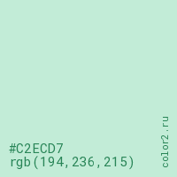 Цвет #C2ECD7 в цветовой модели RGB обозначается тремя октетами (194, 236, 215) в десятичном формате и #C2ECD7 в шестнадцатиричном (hex) формате, которые являются интенсивностью красного 194 (hex C2), интенсивность зелёного 236 (hex EC) и интенсивность синего 215 (hex D7).