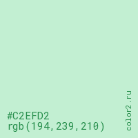 Цвет #C2EFD2 в цветовой модели RGB обозначается тремя октетами (194, 239, 210) в десятичном формате и #C2EFD2 в шестнадцатиричном (hex) формате, которые являются интенсивностью красного 194 (hex C2), интенсивность зелёного 239 (hex EF) и интенсивность синего 210 (hex D2).
