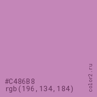 Цвет #C486B8 в цветовой модели RGB обозначается тремя октетами (196, 134, 184) в десятичном формате и #C486B8 в шестнадцатиричном (hex) формате, которые являются интенсивностью красного 196 (hex C4), интенсивность зелёного 134 (hex 86) и интенсивность синего 184 (hex B8).