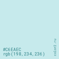 Цвет #C6EAEC в цветовой модели RGB обозначается тремя октетами (198, 234, 236) в десятичном формате и #C6EAEC в шестнадцатиричном (hex) формате, которые являются интенсивностью красного 198 (hex C6), интенсивность зелёного 234 (hex EA) и интенсивность синего 236 (hex EC).