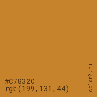 Цвет #C7832C в цветовой модели RGB обозначается тремя октетами (199, 131, 44) в десятичном формате и #C7832C в шестнадцатиричном (hex) формате, которые являются интенсивностью красного 199 (hex C7), интенсивность зелёного 131 (hex 83) и интенсивность синего 44 (hex 2C).