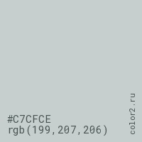 Цвет RGB(199, 207, 206) в процентом отношении количества цвета состоит из 78% красного (red), 81.2% зелёного (green) и 80.8% синего (blue).