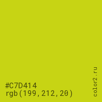 Цвет #C7D414 в цветовой модели RGB обозначается тремя октетами (199, 212, 20) в десятичном формате и #C7D414 в шестнадцатиричном (hex) формате, которые являются интенсивностью красного 199 (hex C7), интенсивность зелёного 212 (hex D4) и интенсивность синего 20 (hex 14).