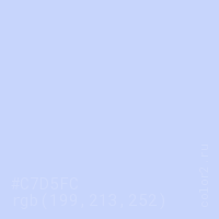Цвет #C7D5FC в цветовой модели RGB обозначается тремя октетами (199, 213, 252) в десятичном формате и #C7D5FC в шестнадцатиричном (hex) формате, которые являются интенсивностью красного 199 (hex C7), интенсивность зелёного 213 (hex D5) и интенсивность синего 252 (hex FC).