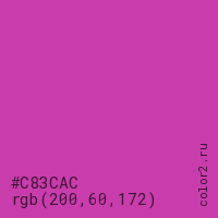 Цвет #C83CAC в цветовой модели RGB обозначается тремя октетами (200, 60, 172) в десятичном формате и #C83CAC в шестнадцатиричном (hex) формате, которые являются интенсивностью красного 200 (hex C8), интенсивность зелёного 60 (hex 3C) и интенсивность синего 172 (hex AC).