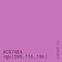 Цвет #C874BA в цветовой модели RGB обозначается тремя октетами (200, 116, 186) в десятичном формате и #C874BA в шестнадцатиричном (hex) формате, которые являются интенсивностью красного 200 (hex C8), интенсивность зелёного 116 (hex 74) и интенсивность синего 186 (hex BA).