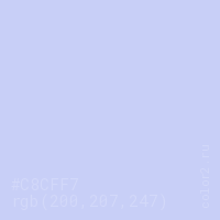 Цвет #C8CFF7 в цветовой модели RGB обозначается тремя октетами (200, 207, 247) в десятичном формате и #C8CFF7 в шестнадцатиричном (hex) формате, которые являются интенсивностью красного 200 (hex C8), интенсивность зелёного 207 (hex CF) и интенсивность синего 247 (hex F7).