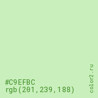 Цвет #C9EFBC в цветовой модели RGB обозначается тремя октетами (201, 239, 188) в десятичном формате и #C9EFBC в шестнадцатиричном (hex) формате, которые являются интенсивностью красного 201 (hex C9), интенсивность зелёного 239 (hex EF) и интенсивность синего 188 (hex BC).