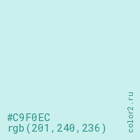 Цвет #C9F0EC в цветовой модели RGB обозначается тремя октетами (201, 240, 236) в десятичном формате и #C9F0EC в шестнадцатиричном (hex) формате, которые являются интенсивностью красного 201 (hex C9), интенсивность зелёного 240 (hex F0) и интенсивность синего 236 (hex EC).