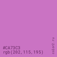Цвет #CA73C3 в цветовой модели RGB обозначается тремя октетами (202, 115, 195) в десятичном формате и #CA73C3 в шестнадцатиричном (hex) формате, которые являются интенсивностью красного 202 (hex CA), интенсивность зелёного 115 (hex 73) и интенсивность синего 195 (hex C3).