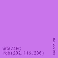 Цвет #CA74EC в цветовой модели RGB обозначается тремя октетами (202, 116, 236) в десятичном формате и #CA74EC в шестнадцатиричном (hex) формате, которые являются интенсивностью красного 202 (hex CA), интенсивность зелёного 116 (hex 74) и интенсивность синего 236 (hex EC).