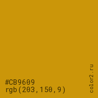 Цвет #CB9609 в цветовой модели RGB обозначается тремя октетами (203, 150, 9) в десятичном формате и #CB9609 в шестнадцатиричном (hex) формате, которые являются интенсивностью красного 203 (hex CB), интенсивность зелёного 150 (hex 96) и интенсивность синего 9 (hex 09).