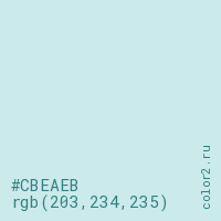 Цвет #CBEAEB в цветовой модели RGB обозначается тремя октетами (203, 234, 235) в десятичном формате и #CBEAEB в шестнадцатиричном (hex) формате, которые являются интенсивностью красного 203 (hex CB), интенсивность зелёного 234 (hex EA) и интенсивность синего 235 (hex EB).